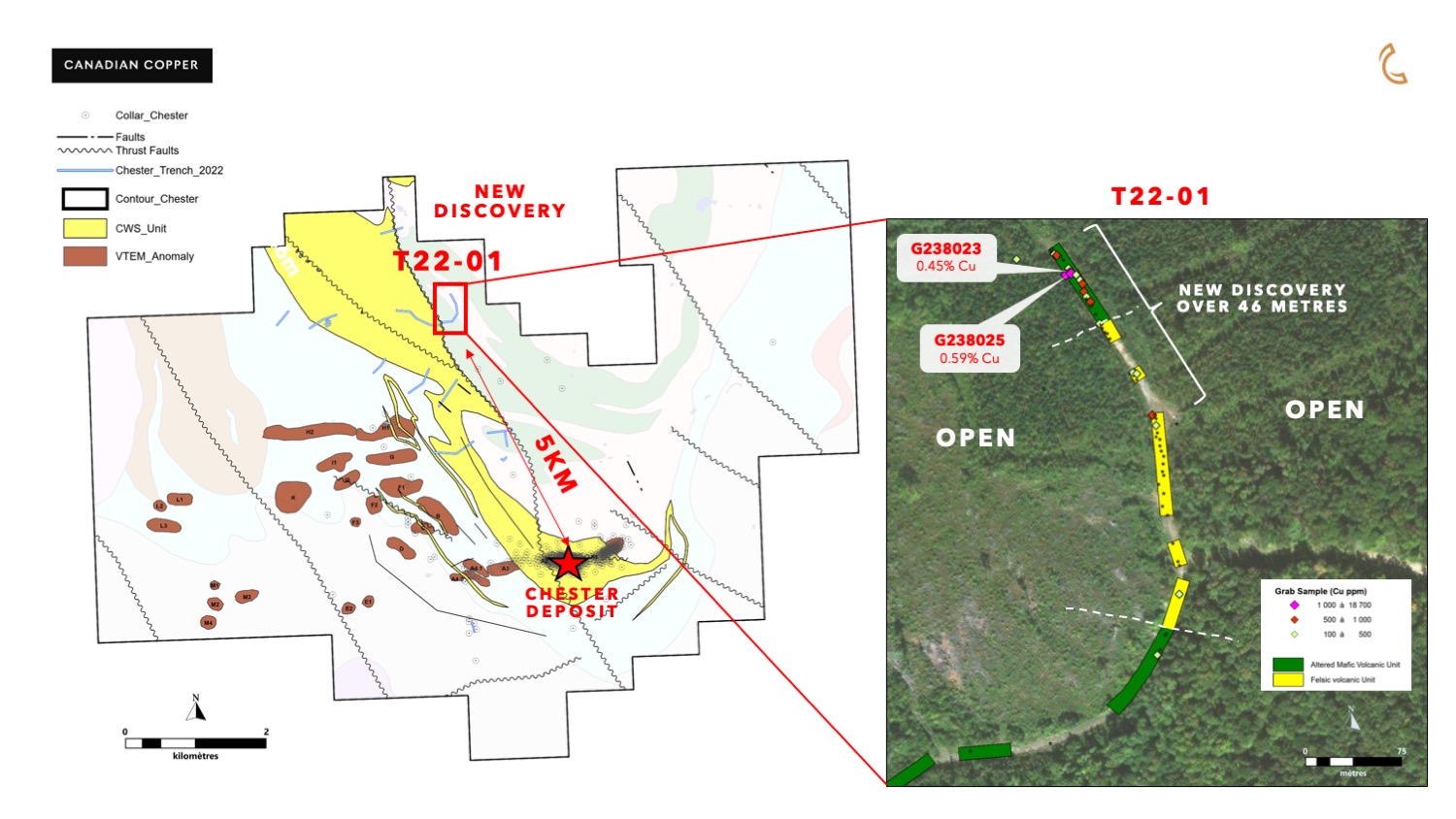 Toronto, February 28th, 2023 – Canadian Copper Inc. (“Canadian Copper” or the “Company”) (CSE:CCI) is pleased to report results from its November and December 2022 trenching program at the Chester Project (“Chester”) located in the well-known Bathurst Mining Camp (“BMC”) in Northern New Brunswick, Canada.