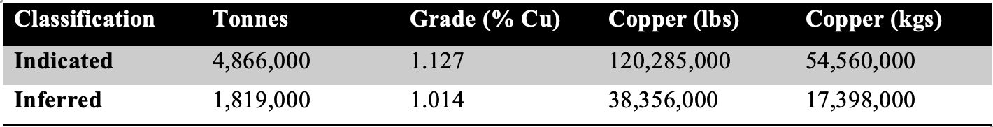 Table 1: Open Pit Mineral Resource Estimate at a cut-off of 0.5% copper*
