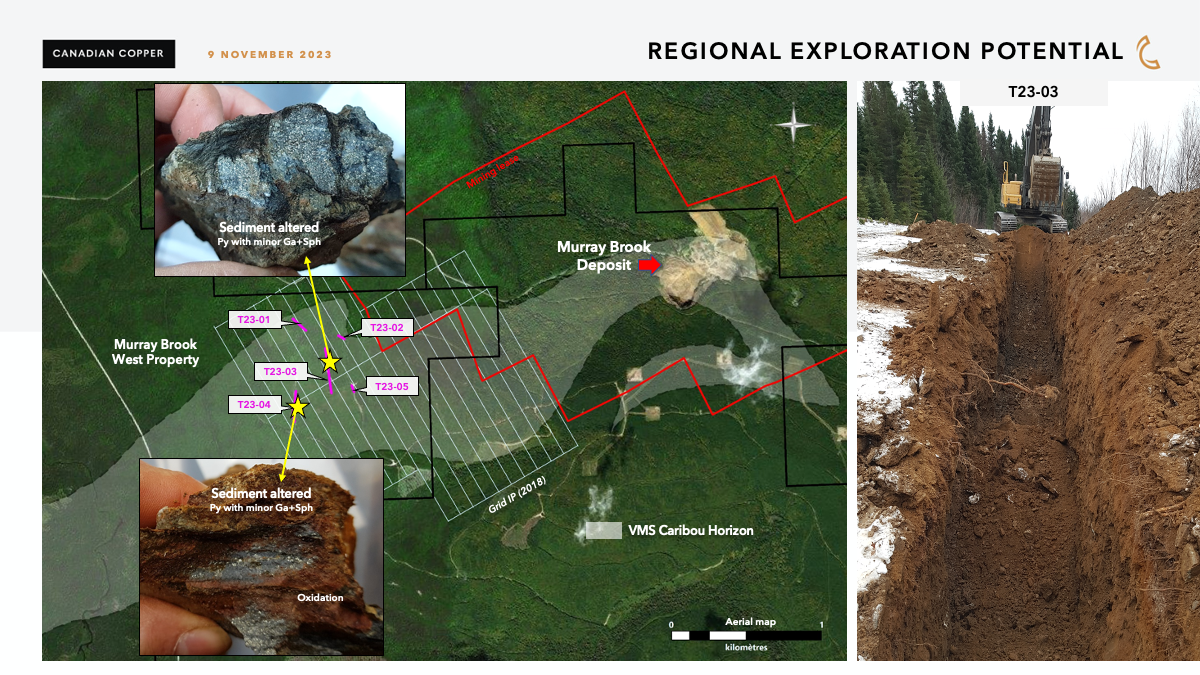 Toronto, November 14th, 2023 – Canadian Copper Inc. (“Canadian Copper” or the “Company”) (CSE:CCI) is pleased to provide an update on its ongoing property-wide 2023 trenching program at the Murray Brook West Project (“MBW”) in the Bathurst Camp of New Brunswick, and recent developments regarding the Caribou Mine restructuring process.