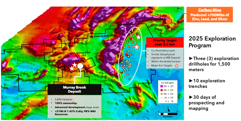 Toronto, May 12th, 2025 – Canadian Copper Inc. (CSE:CCI) (“Canadian Copper” or the “Company”) provides an update on its corporate activities related to its upcoming Caribou Complex Preliminary Economic Assessment (“PEA”) and its on-going Murray Brook East exploration program.