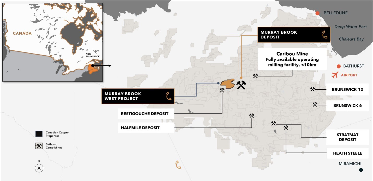 The Company’s flagship asset is the 100%-owned Murray Brook deposit, for which its acquisition was completed in 2024. The Murray Brook Deposit is the largest VMS deposit in New Brunswick and is the central component of the Combined Strategy, which includes the Caribou Processing Complex, located approximately 10 kilometres away.